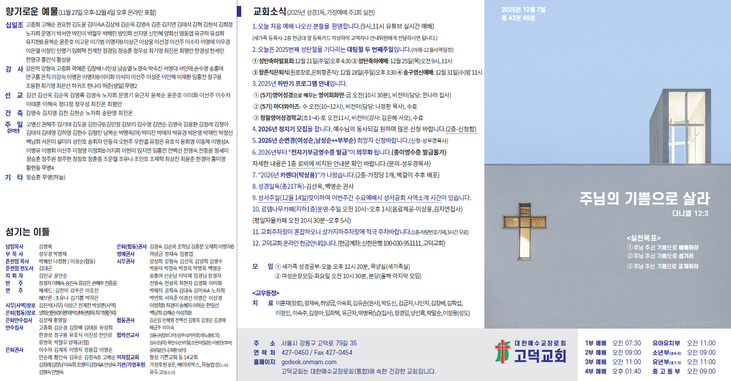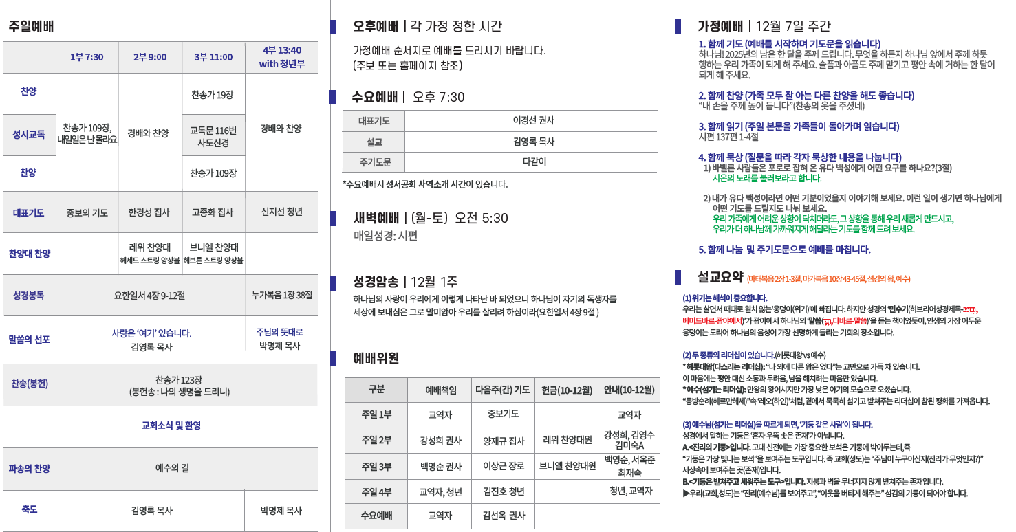 2025년 12월 7일 교회소식입니다.