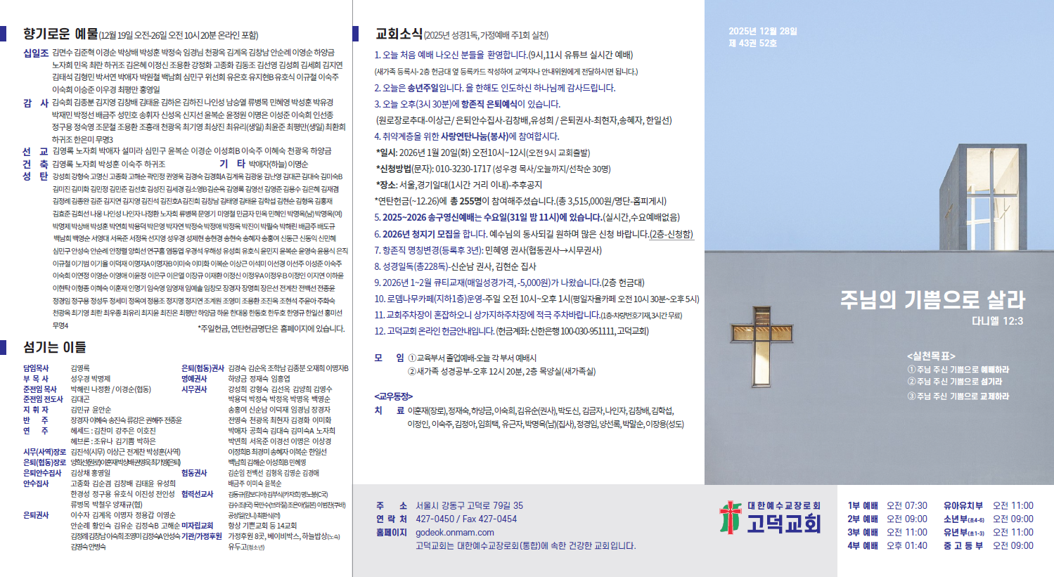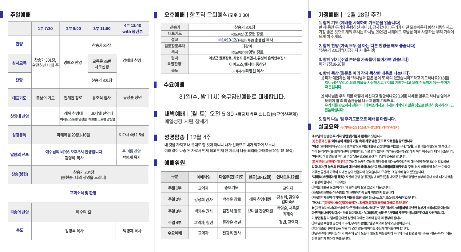 2025년 12월 28일 교회소식입니다.