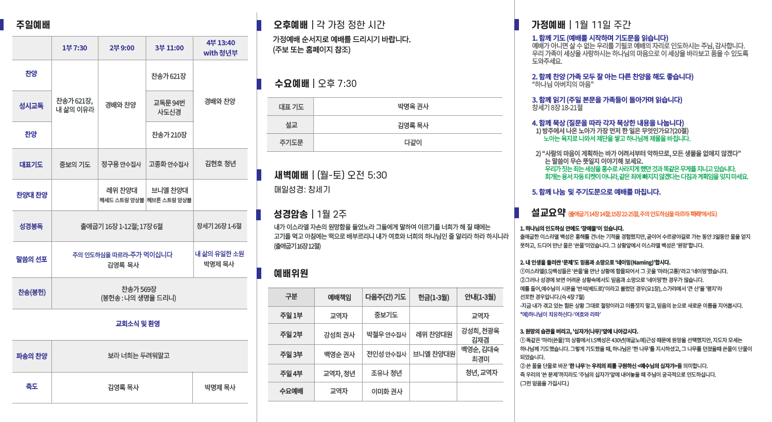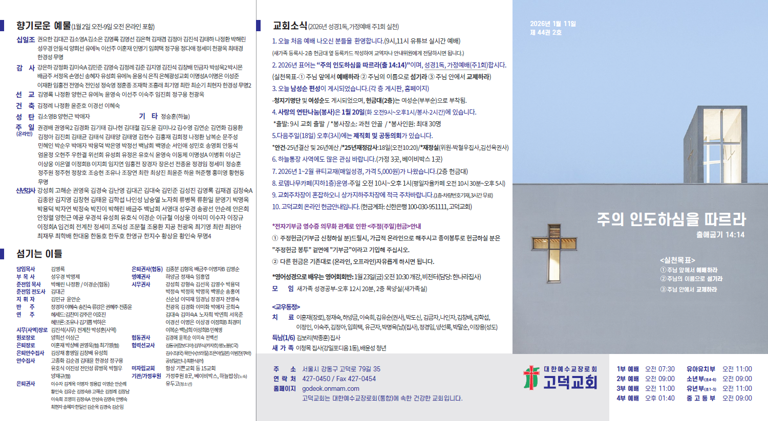 2026년 1월 11일 교회소식입니다.