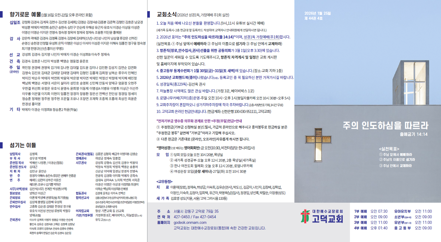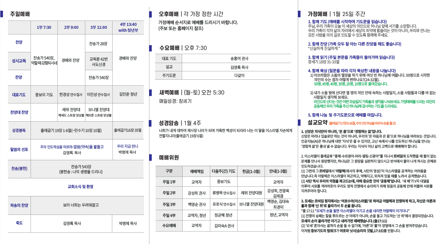 2026년 1월 25일 교회소식입니다.