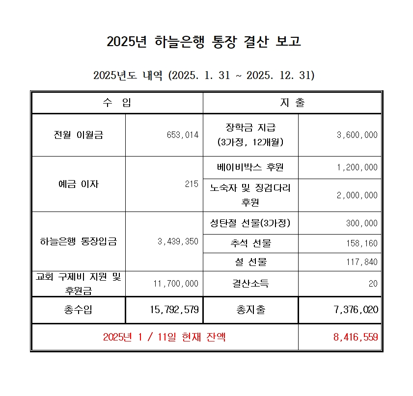 2025년 하늘통장 결산내역