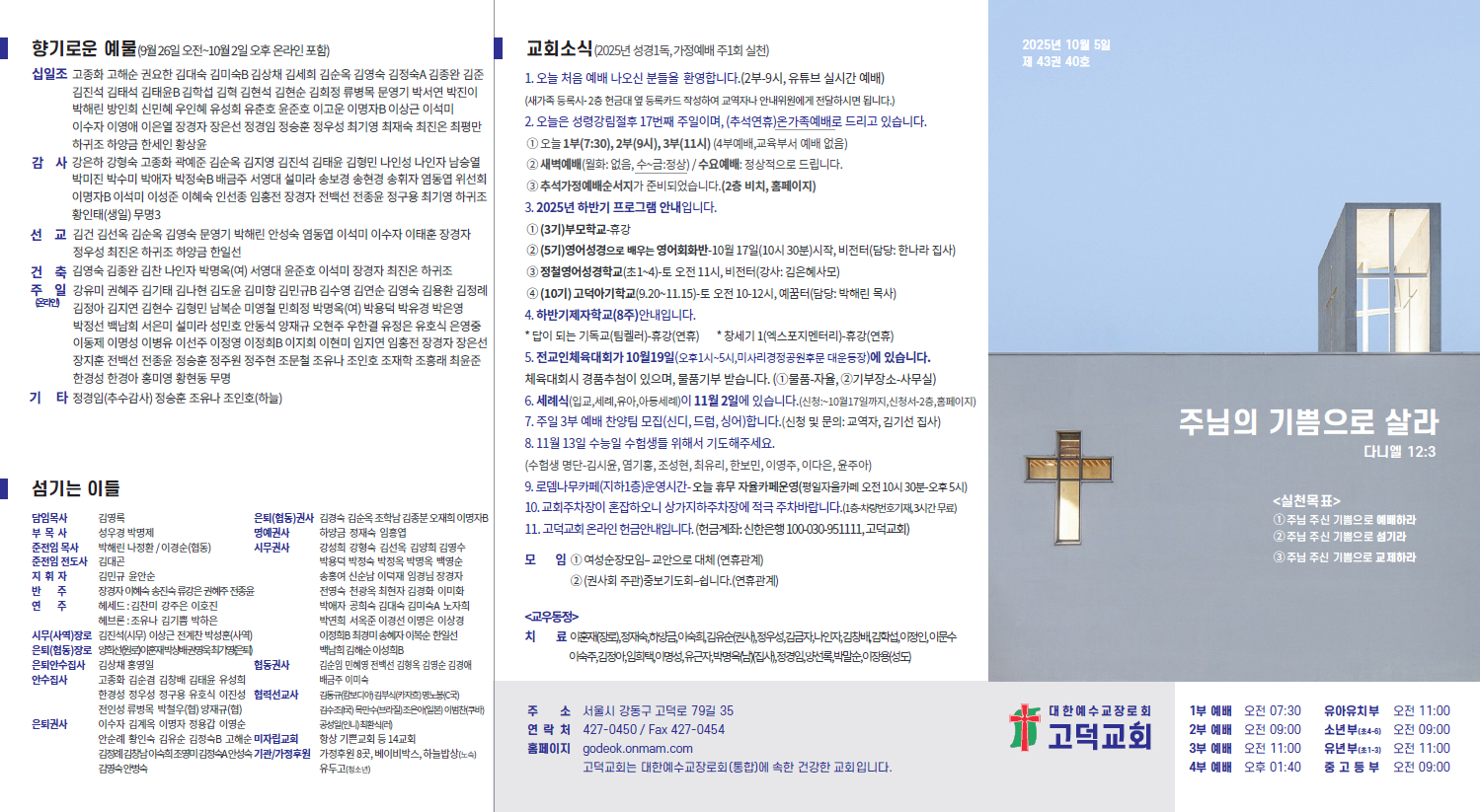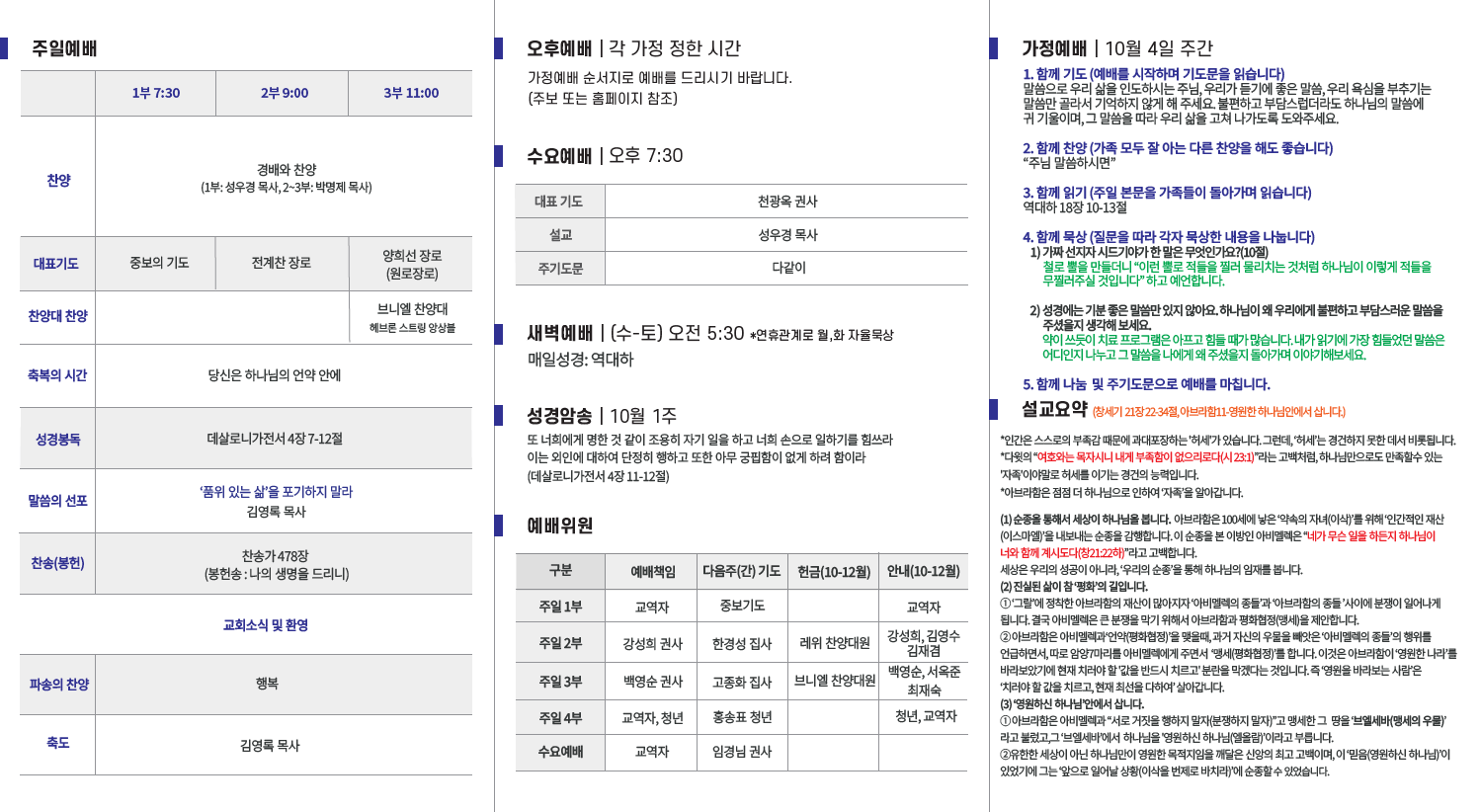 2025년 10월 5일 교회소식입니다.